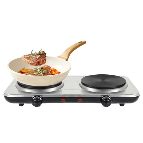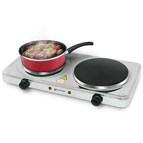 Grunkel - 15,5 cm och 18,5 cm elektrisk spis med dubbla plattor - EHP-218INOX - Elektrisk dubbelspis som är perfekt för husvagnar, camping eller små kök, -1000 W + 2 000 W - rostfritt stål