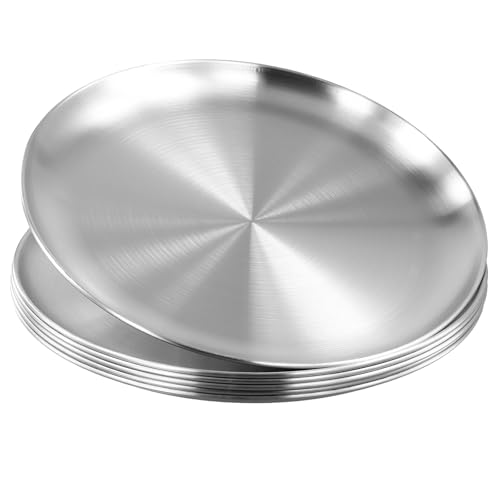 Funsuei 6 stycken 26 cm rostfritt stål tallrikar, rostfritt stål rund servis camping rostfritt stål, silver fat rund serveringstallrik för camping, kök, fest