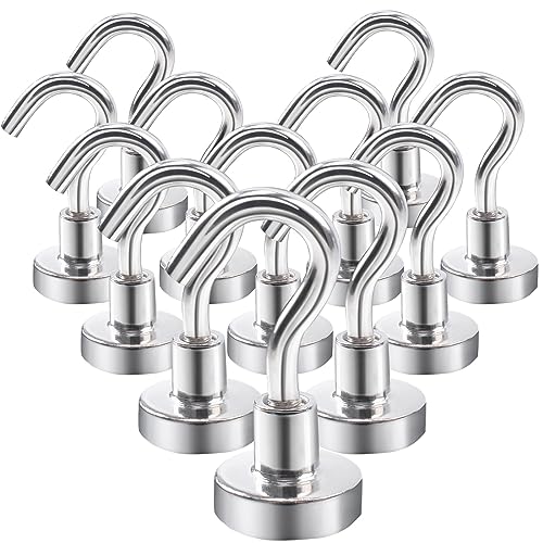 Aenienoe Magnetkrok liten 12 stycken magnetkrokar, starka magneter med krokar, 11 kg, magnetiska neodym, magnetiska krokar, krokmagneter för upphängning, kök, camping, tillbehör, 16 mm, silver