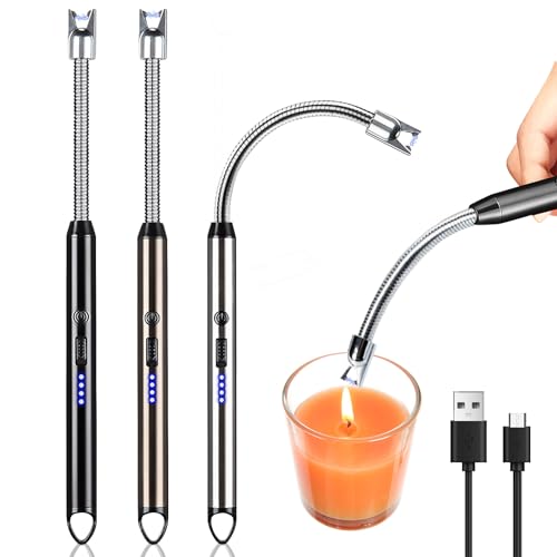 Stavtändare, 3 stycken ljusbåge-tändare, elektrisk, USB uppladdningsbar plasma ljuständare med säkerhetslås, lång stav stormtändare för eldstad ljus grill spis kök camping