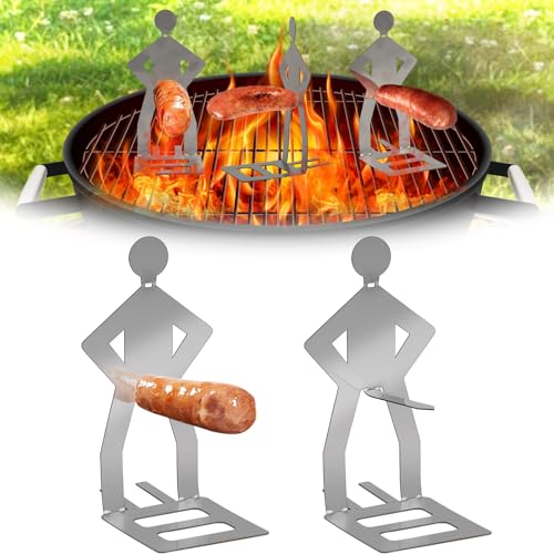 2 st roligt grillställ i rostfritt stål, rolig grillgaffel för camping, utomhuspicknick, trädgård, kök, grillgåvor för män