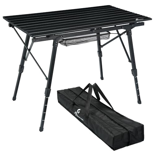 Fällbart bord campingbord för utomhusbruk – bärbart picknickbord med justerbar höjd, nätstöd, fällbart campingbord med rullbar aluminiumbordsskiva för camping, trädgård, kök