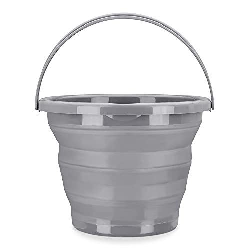 Navaris Fällbar hink silikon hink vikbar – 10 l rengöringshink för rengöring camping fiske kök – 10 liter hushållshink kompakt i grått