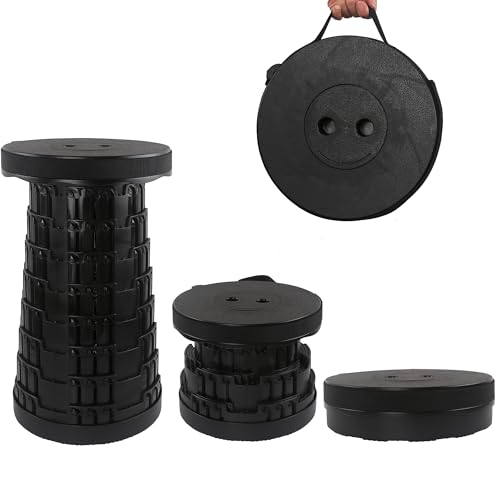 HVDHYY Fällbar pall vikbar pall lastkapacitet 215 kg/470 pund teleskoppall 7 justerbara höjder, campingpall svart för resepall utomhus trädgård fiske BBQ inomhus kök camping