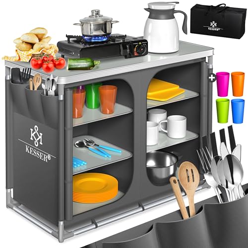 KESSER® Campingkök | inkl. bärväska | campingskåp | med aluminiumram | resekök | kökslåda | tältskåp | utomhus camping kök |