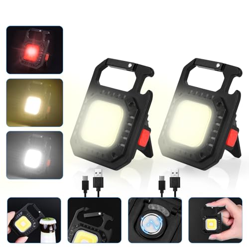 URAQT Mini LED-ficklampa, 7 Lägen Mini Nyckelring Ficklampa, Multifunktionellt Magnetiskt Ljus, 800 Lumen, Vattentätt, med Flasköppnare, Magnetisk Bas, för Camping/Reparation/Nödsituation