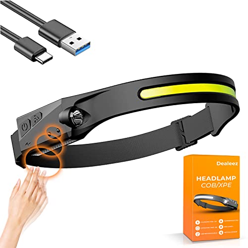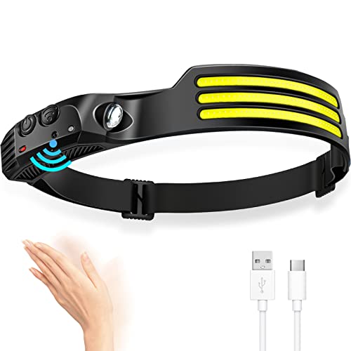 DAWINSIE Uppladdningsbar LED-pannlampa, rörelsesensor ficklampa med 5 lägen, IPX4 vattentät för cykling, camping, fiske, DIY, löpning