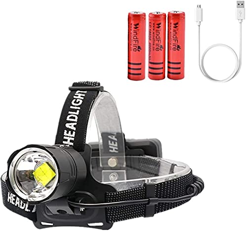 WholeFire 13 000 Lumen LED-pannlampa, superljus USB-uppladdningsbar, XHP90 zoombar pannlampa med 4 lägen, COB-ljus, strömindikator och powerbank för nödsituationer vid camping