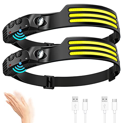 DAWINSIE Uppladdningsbar LED-pannlampa (2 st), pannlampa med rörelsesensor, 5 lägen 230° belysning, för barn, vuxna, camping, vandring