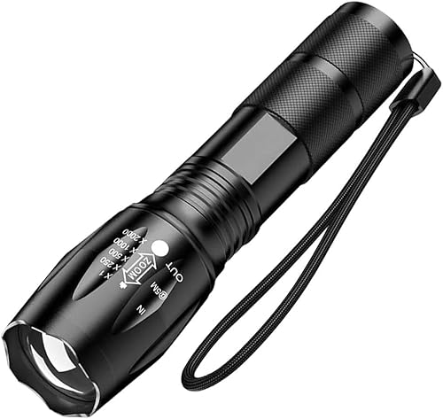 MVIOCS LED-ficklampor med hög lumen – ficklampor för camping, vandring, promenader – kraftfulla nödficklampor med 5 lägen för hemmabruk – ljus ficklampa med zoombar stråle (1-pack)