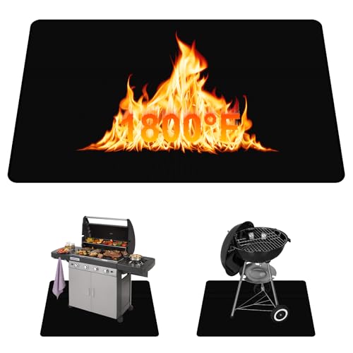 ALEENFOON Eldstad matta under grill utomhus BBQ brandsäker matta dubbelsidig värmebeständig oljebeständig vattentät dyna för grill mark gräsmatta camping (100 x 150 cm)