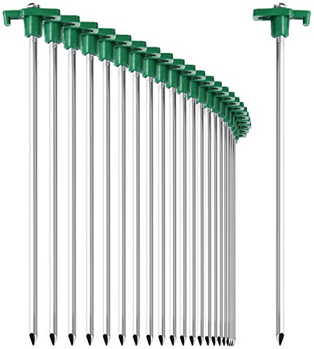 KEELYY 20 x tältringar, pinnar stål med gänga, skruvringar camping, pinnar jordspikar stabil för camping och utomhus, tältkrokar för hård mark, skog, ängar, gräs, robust och stark