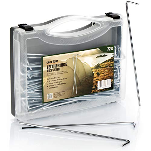 COM-FOUR® 72x ståltältpinnar med låda för förvaring - långa och robusta markpinnar för camping och utomhus - idealisk för normal mark - Ø 4 mm