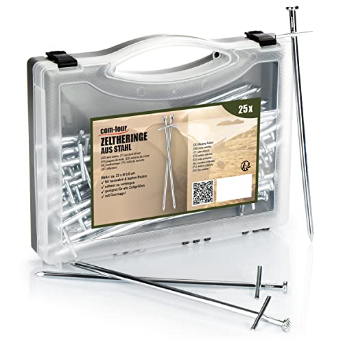 COM-FOUR® 25x tältpinnar av stål - långa och robusta markpinnar för camping och utomhus - perfekt för normal och hård mark