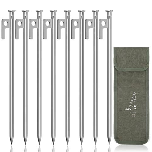 Forever Speed 8 st ståltältpinnar med förvaringsväska, 30 cm camping tältpinnar för hård mark, skogar, ängar - silver