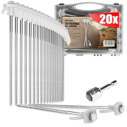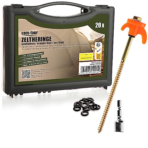 COM-FOUR® 20x tältpinnar av stål - skruvpinnar med adapter för sladdlös skruvmejsel - robusta markspik med gänga för camping och utomhus - tältpinnar idealiska för hård mark