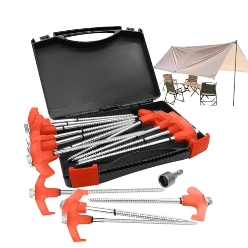 Tältpinnar skruv – 15 st tältpinnar för camping, markpinnar för tak | stoppare, mark, T-dragpinnar med gängade ändar och förvaringsbox, tältpinnar för camping, vandring, resor