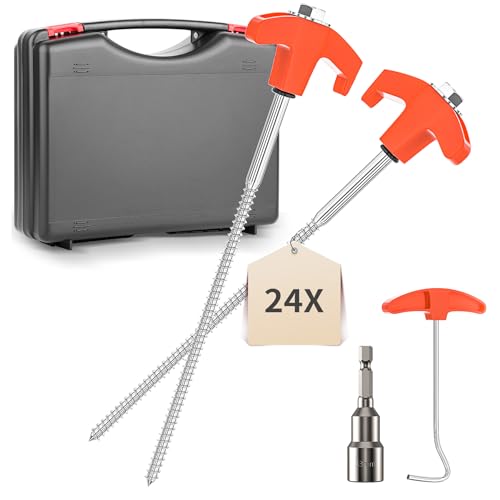 YAOBLUESEA 24 st skruvringar, tältpinnar av stål, camping, tältringar, set med förvaringslåda, 25 cm, tältpinnar, jordspikar, stabil med camping, tältpinnar, dragare, sexkantsborr för hård mark, skog,