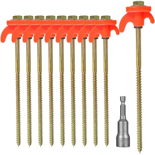 KEELYY 10 x tältringar, pinnar stål med gänga och rephållare, tältpinnar jordspikar, stabil för camping och utomhus, tältkrokar för hård mark, skog, ängar, gräs, robust och stark