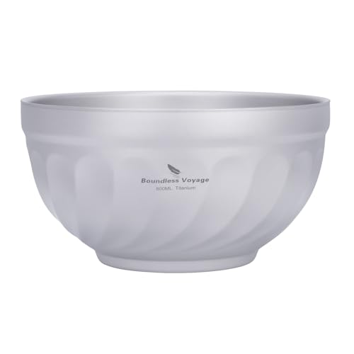 iBasingo dubbelväggiga titanskålar 500 ml & 800 ml havregryn mat rissoppa skål ultralätt bärbar servis utomhus camping metallskål (800 ml Ti1169T)
