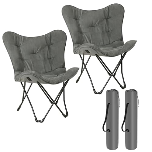 eSituro Campingstolar set med 2, stoppade hopfällbara stolar med bärväska, lätt bärbar, för fiske picknick camping, fuskmocka och Oxfordtyg, mörkgrå, 84 x 67 x 88 cm, SCPC0017-2