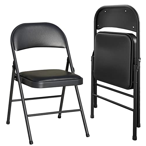 KAIHAOWIN Fällbara stolar set om 2, vinyl fällbara stolar bärbara, stapelbara moderna kommersiella säten med pulverlackerat hållbart metallram för inomhus/utomhus/kontor/camping.