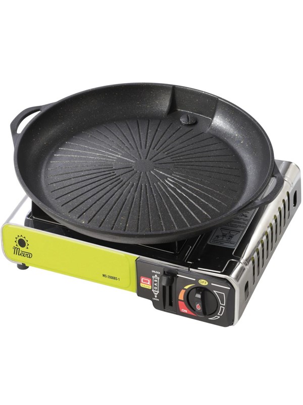 Meva Grill grate and grill pan for a gas camping stove