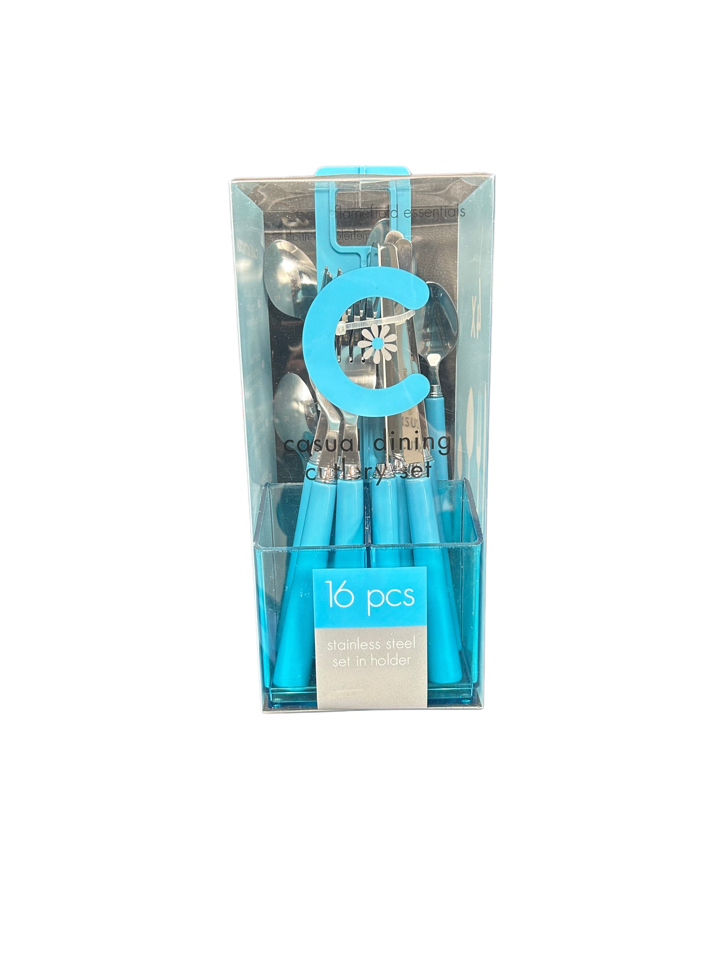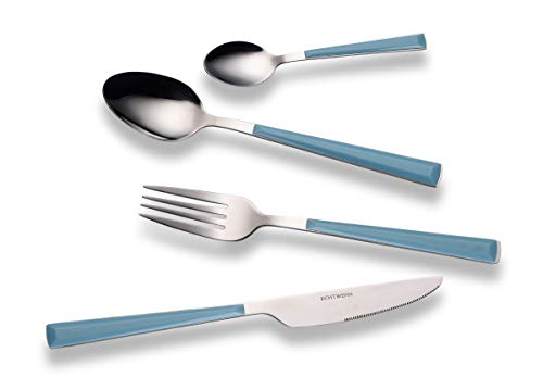 Echtwerk bestickset "Basic" med plasthandtag, campingbestick, picknickbestick, lätt resebestick, utomhusbestick för grillning utomhus, 16 delar, upp till 4 personer, 18/0 rostfritt stål, ljusblå