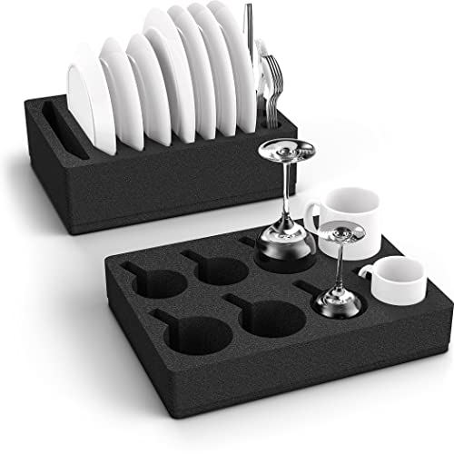 Siegvoll skumbestickhållare Mugghållare Tallrikhållare (utan disk) för husbilar, husvagnar, båtar, campingbestick Förvaring för 8 tallrikar + 8 koppar (kompatibel med fler storlekar)