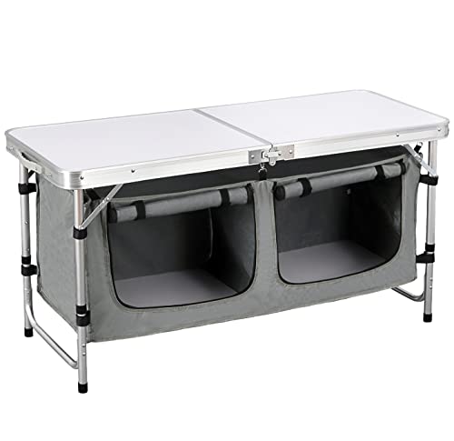 WOLTU Köksbord för camping, campingskåp, hopfällbart bord, campingbord i aluminium med förvaringsväska, campingskänk, CPT8140wgr