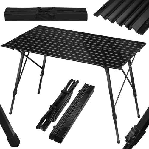 Sportneer Fällbart bord campingbord utomhus bärbart picknickbord med justerbar höjd på nätlager hopfällbart campingbord med aluminium upprullningsbar bordsskiva för läger kök trädgård sömnad arbete
