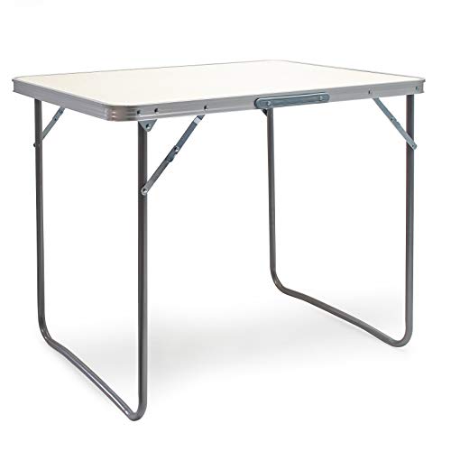 Wiltec Campingbord, hopfällbart, 80 x 60 cm med vit bordsskiva av MDF och aluminiumram, fällbord, aluminium, fällbart bord, camping, trädgård, balkong, utomhus, camping, bord, vikbart