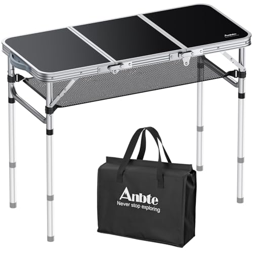 Anbte Hopfällbart Campingbord, Multifunktionellt 90x40x26/51/70 cm, Justerbart Höjd, Bärbart Bord, Vattentät Aluminium för Utomhus, Trädgård, Camping & Strandpicknick (Svart)