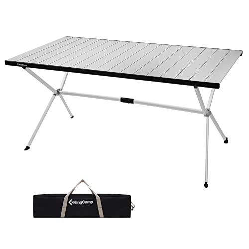 KingCamp Hopfällbart campingbord aluminium upprullningsbord 148 x 80 cm bärbart bord med upprullad topp, kompakt bärväska hopfällbart picknickbord för utomhus trädgård matlagning BBQ trädgård håller