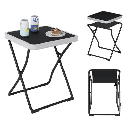 eSituro 2 i 1 campingbord, hopfällbart soffbord med avtagbar topp, bärbart lätt campingbord, hopfällbart bord för utomhusbruk, trädgård, fiske, 40,5 x 40,5 x 50 cm, svart