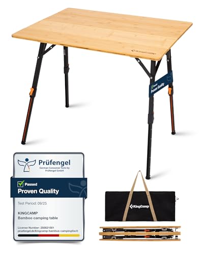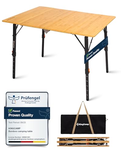 KingCamp Campingbord bambu 100 x 70 cm, hopfällbart bordshöjd justerbar 42~70 cm för 2–6 personer 4 vikbara campingbord hopfällbart upp till 80 kg