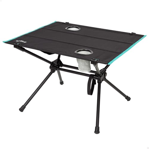 AKTIVE Campingbord hopfällbart 63 x 56 x 42 cm med mugghållare och nätficka, robust struktur, håller upp till 100 kg, utomhus och transport med medföljande påse (63129)