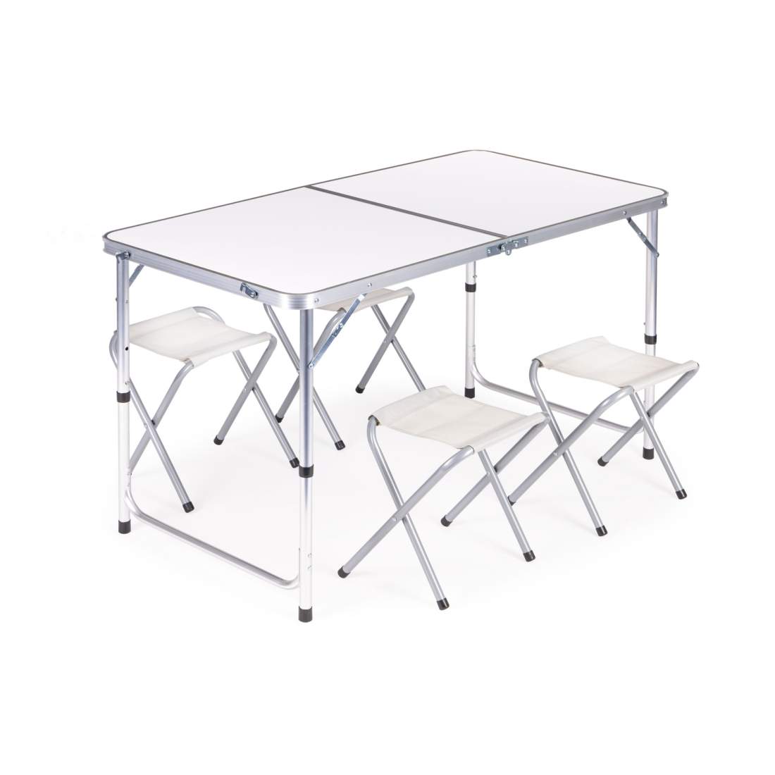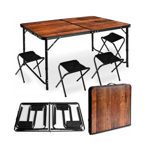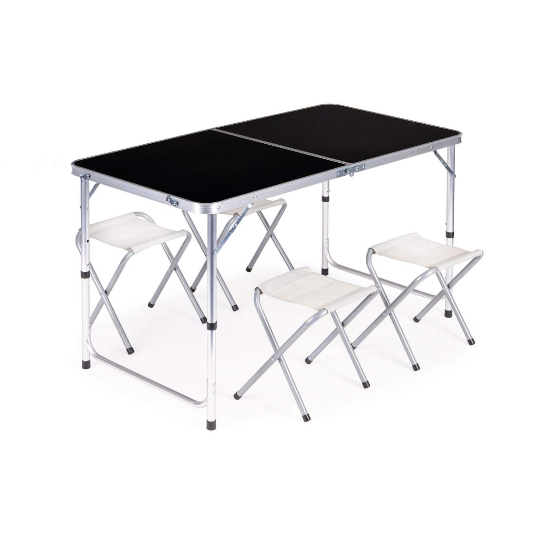 QLS Fällbart bord med 4 stolar, set vikbart 120 x 60 cm, bärhandtag, höjdjustering, campingbord