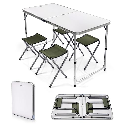 Vikbart Campingbord med 4 Stolar, Justerbar Höjd