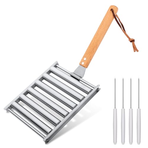 Korvrulle, Rostfritt Stål Korvstativ med 4st Gafflar och Trähandtag Grilltillbehörshållare Korvgrilltillbehör för Campinggrill