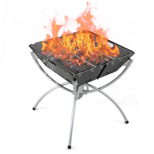 CIRULLI Bärbar kolgrill av rostfritt stål – kompakt, vikbar BBQ grill för camping, trädgård och balkong, utomhusgrill, campinggrill (44 x 20 x 36 cm) kolgrill