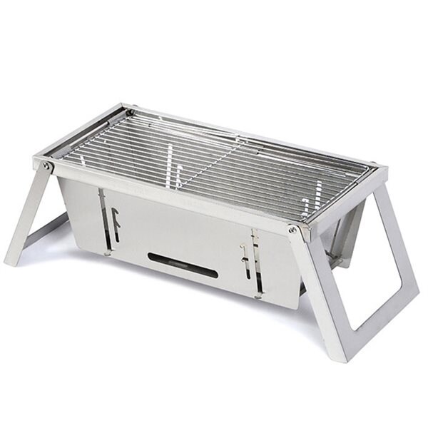 Ved Bärbar, hopfällbar, picknick- och campinggrill tillverkad i rostfritt stål, kolröksgrill för terrass, uteplats, trädgård, camping, vandring och strandresor.