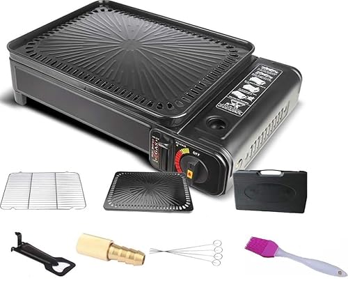 SMH LINE® 2-i-1 camping gasgrill set campinggrill balkong grill bordsgrill campingkök bärbar resväska gas grill BBQ inkl. tillbehör grillgaller grillpannklämma kassettgrill