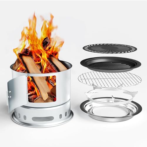 GFTIME Bärbar vedelugn, campinggrill, raketugn med grillplatta, grillgaller, campingkök för matlagning, uppvärmning och grillning, campingspis, camping, vedspis för holländsk ugn, träkolgrill, utomhus