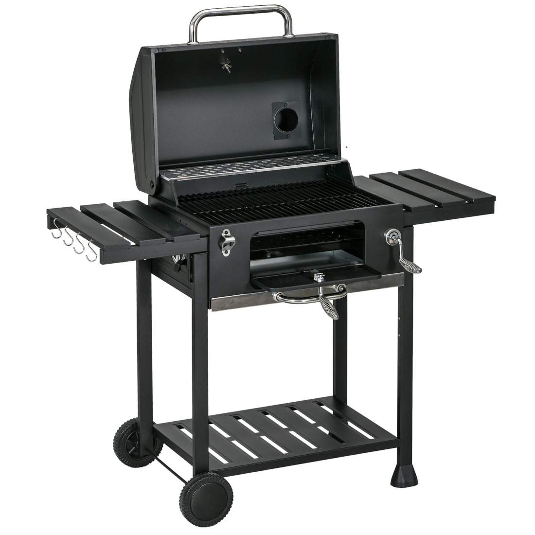 Laneetal Griller utomhus, kolgrill med lock, grillvagn med hjul, kolgrill med grillgaller, trädgårdsgrill av metall, campinggrill, svart