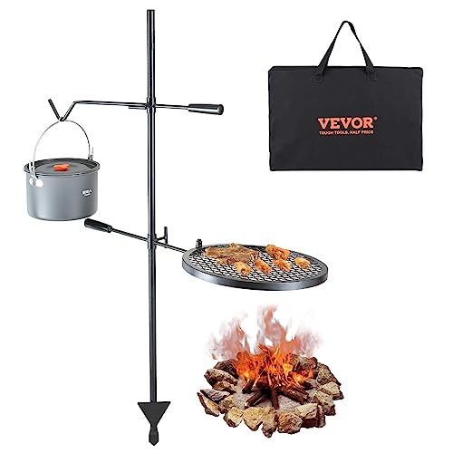VEVOR Campinggrill rund 360 x 360 mm, justerbar vridbar lägereld grill med och krokhållare, rostfritt stål kolgrill för utomhusbruk camping