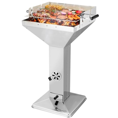 Sunjas kolgrill, rostfritt stål, hopfällbar grill, utomhus, BBQ, grill, bärbar campinggrill, stående grill, grillvagn, kolgrill, 74 x 33,5 x 71,5