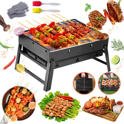 LOSMANN Bärbar campinggrill, kolgrill, infällbar minigrill av förkromat rostfritt stål för picknick camping BBQ vandring resor bakgårdar utomhus, enkel montering och demontering