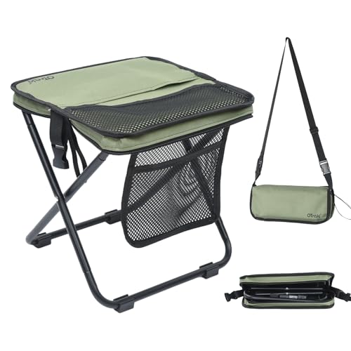 OTraki Bärbar hopfällbar pall vikbar campingpall med förvaringsväska, vikbar ryggsäckspall, bärkapacitet, 120 kg, utomhus, fällstol för bergsklättring, fiske, resor, vandring, grillning (grön)