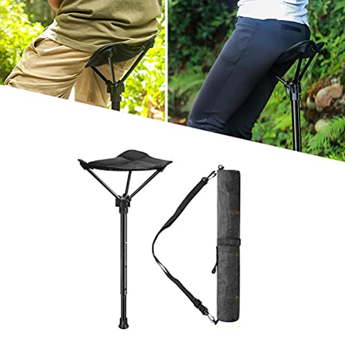 ALEVMOOM Bärbar hopfällbar pall med kudde, teleskoppall, campingpall hopfällbar pall, för utomhus- och inomhusaktiviteter, vandring, fiske, lastkapacitet 100 kg med ficka karbinhake